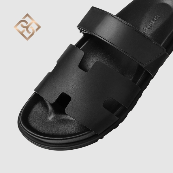 Techno-sandal in calfskin with anatomical rubber sole and adjustable strap.