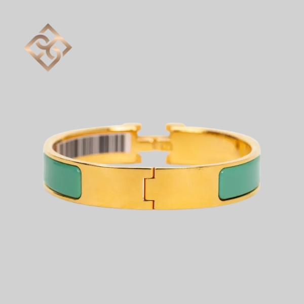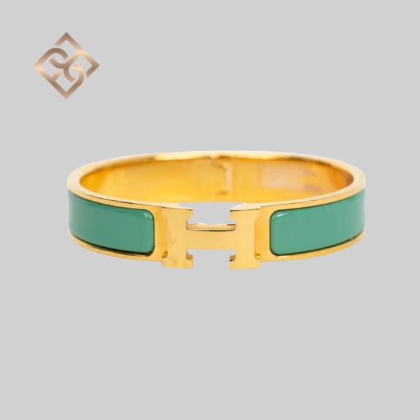 Narrow bracelet in ” Vert Moderne” printed enamel.