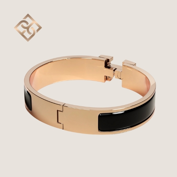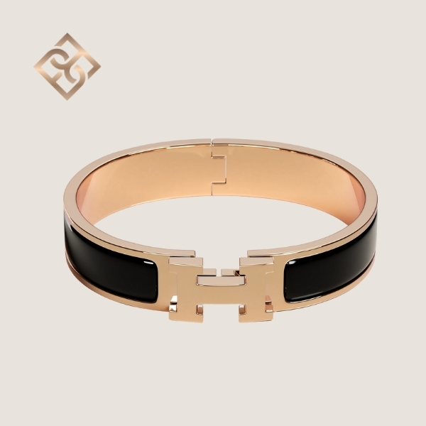 This bracelet opens and closes thanks to an ingenious toggle clasp which reveals an “H”.