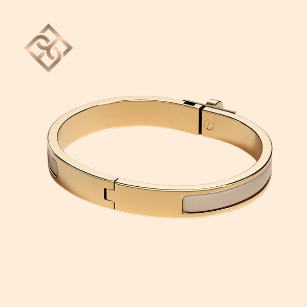 This bracelet opens and closes thanks to an ingenious toggle clasp which reveals the iconic Kelly signature.