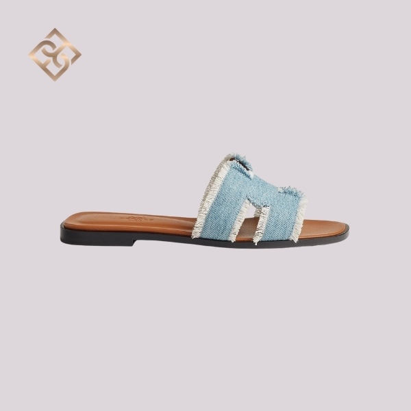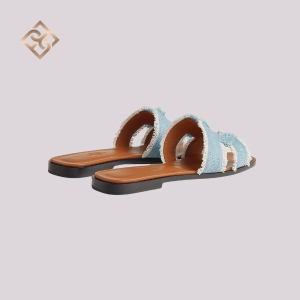 Hermès Oran Sandal – Bleu Clair Fringed Denim