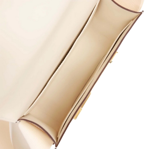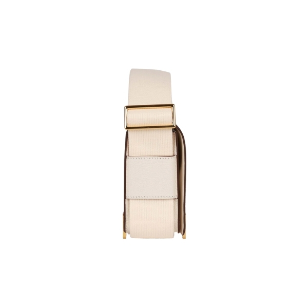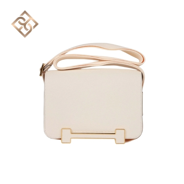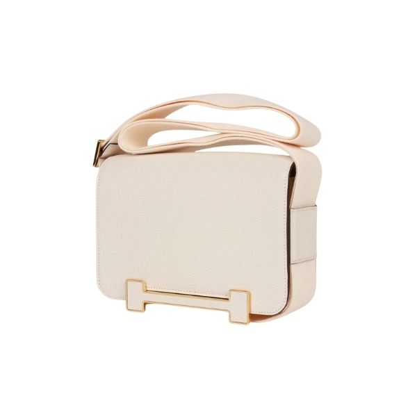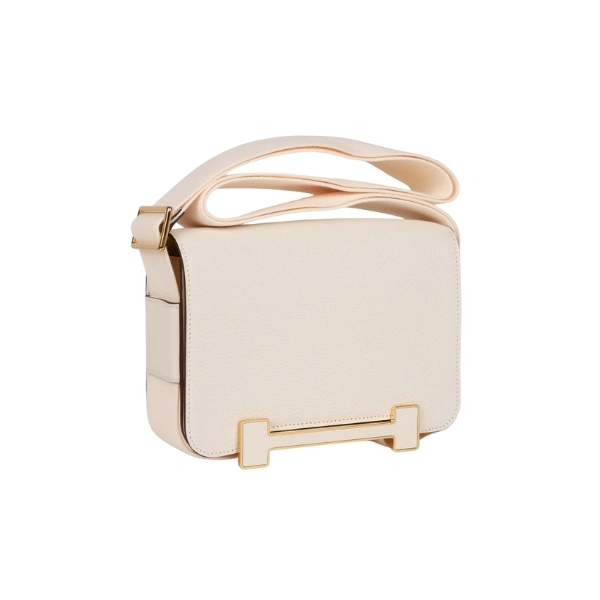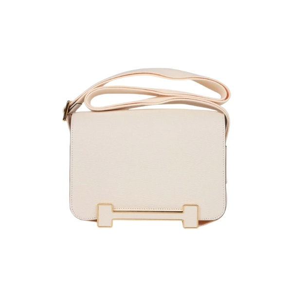 This Geta Bag is in Nata chevre leather with gold hardware, tonal stitching, single magnetic flap closure, and adjustable shoulder strap.