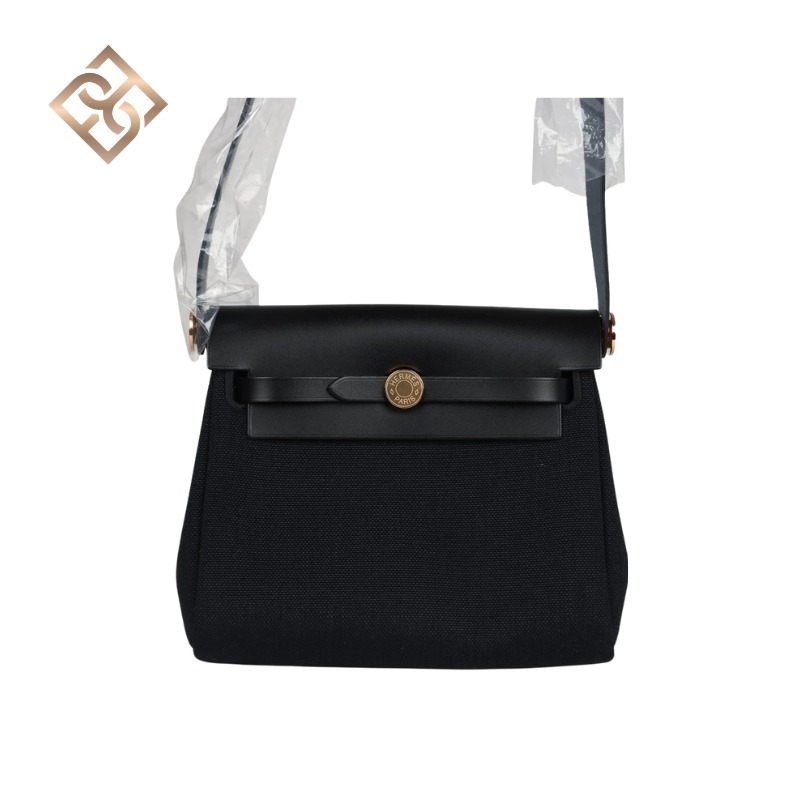 / Hermès Herbag Zip 20 Mini Black Toile Militaire Canvas and Black Vache Hunter Gold Hardware