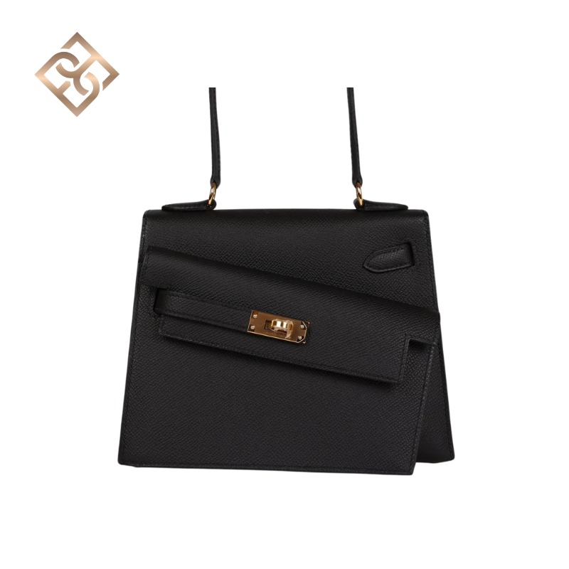 / Hermès Kelly Sellier En Desordre 20 Black Epsom Gold Hardware