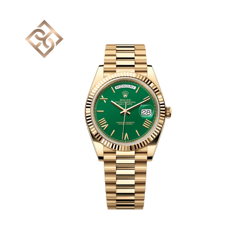 Day Date, Oyster, 40 mm, Yellow gold , Green
