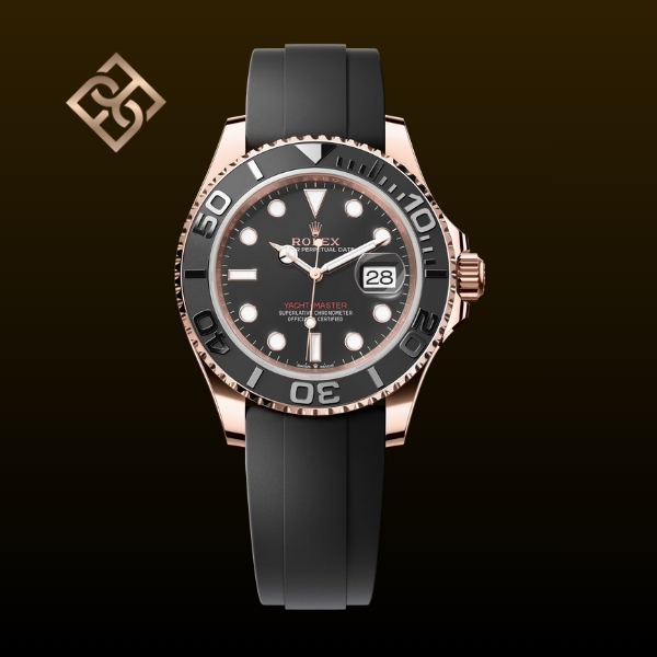 The Oyster Perpetual Yacht-Master 40 in 18 ct Everose gold with an Oysterflex bracelet.